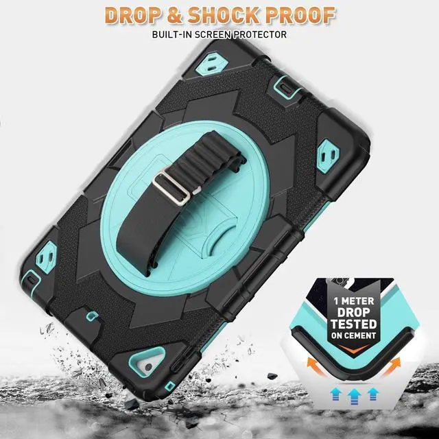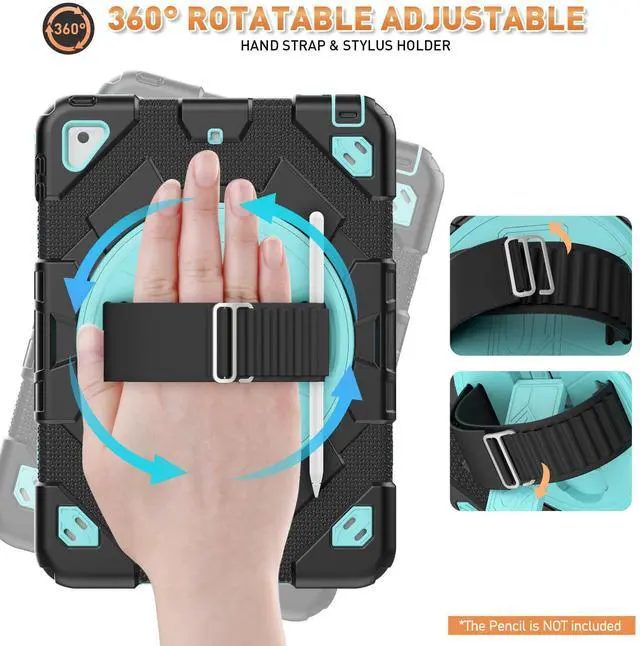 MULTI-ANGLE FUNCTIONALITY: 360° rotating stand with 5 positions for video calls, notes, or viewing; Detachable shoulder strap for commutes; Anti-slip hand strap secures during outdoor work; Dedicated pencil holder for hiking/transport