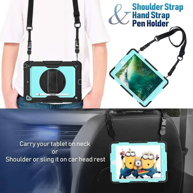 Timecity Case Compatible with iPad 6th/5th Generation, 9.7 Inch 2018/2017 Case with Rotating Stand/Strap Full-Body Silicone+PC Protective Case Replacement for iPad 5th/6th Gen/Air 2/ Pro 9.7 SkyBlue