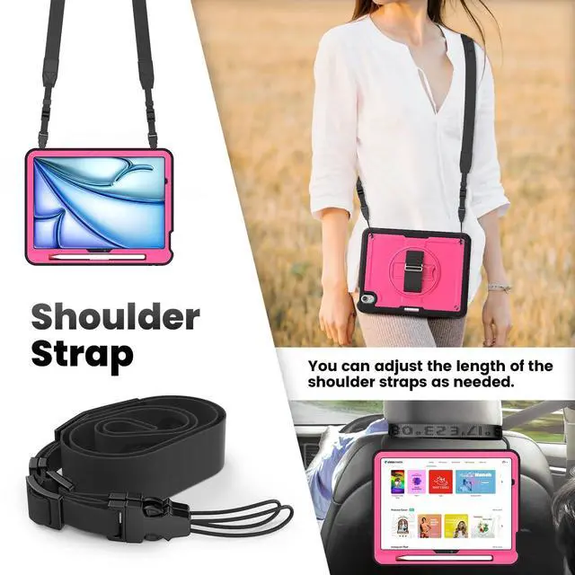 Adjustable Shoulder Strap and Wireless Charging Support: This allows users to carry their device hands-free, adjusting the length to suit their body size or preferred carrying style. The case for iPad Air 11 features a pen slot that allows for wireless charging without removing the protective cover.
