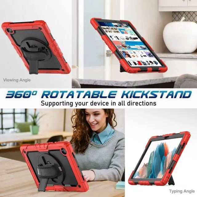 [Swivel Kickstand / Pencil Holder] The Samsung Tab A8 2022 Case back has a 360 degree rotatable turntable, the foldable kickstand hidden inside. When the stand is opened, it could be rotated 360 degrees with the turntable to achieve different standing angles. The extra pencil holder design will avoid the trouble finding your pen. (Pencil is NOT included.)