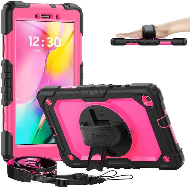 Timecity Case Compatible with Galaxy Tab A 8.0" 2019 SM-T290/T295/T297, with Built-in Screen Protector&360 Degree Swivel Stand&Hand Strap&Shoulder Strap Protective Case for Tab A 8.0 2019-Rose