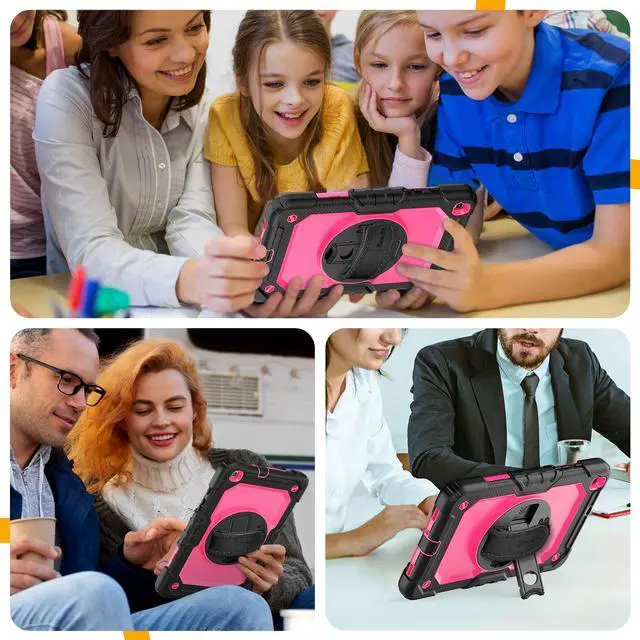 [360°Rotatable Stand & Hand Strap & Convenient Pencil Holder] 360°Rotatable foldable stand offers multiple angles for enjoying the most comfortable keyboard-typing and movie-viewing. The 360°Rotatable adjustable hand strap makes you hold or use your tablet easily in all directions. Designed with a penci