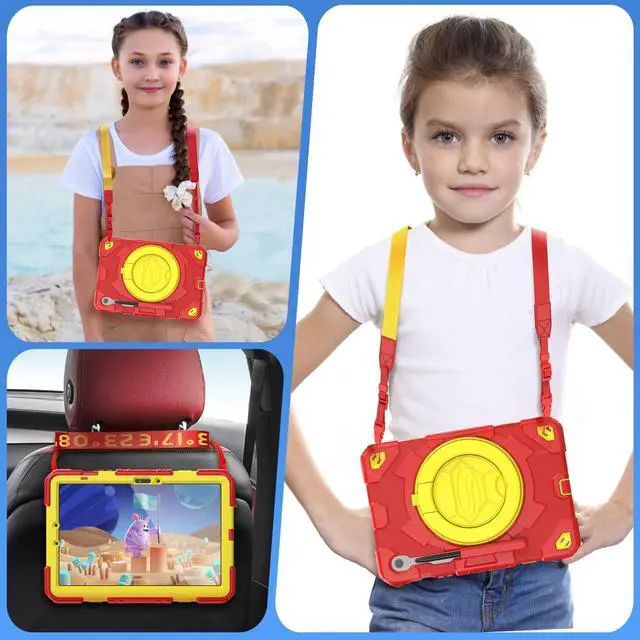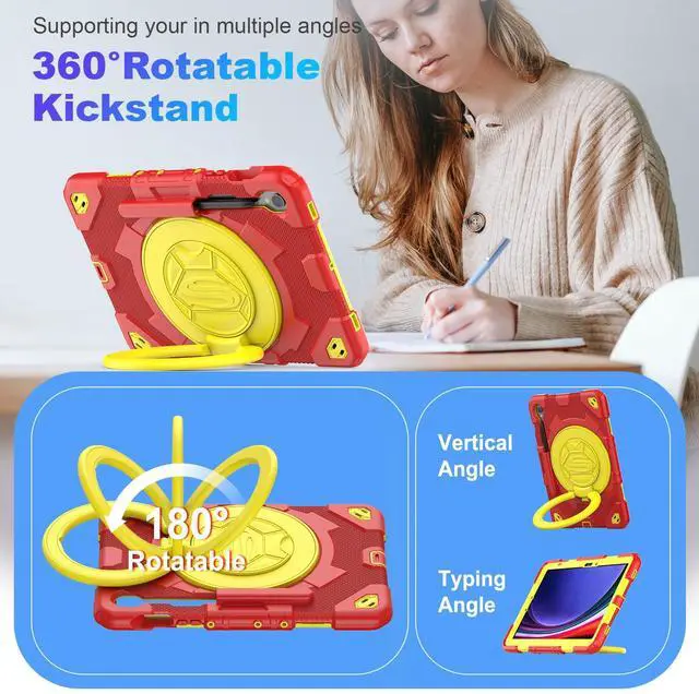 Timecity Case for Samsung Galaxy Tab S10 Lite/ S10 FE/ S9 FE/ S9 with Screen Protector, Pen Holder [360 Rotating Hand Grip]&Stand, Drop-Proof Case for Galaxy Tab S10 Lite/S10 FE/S9 FE/S9, Yellow+Red