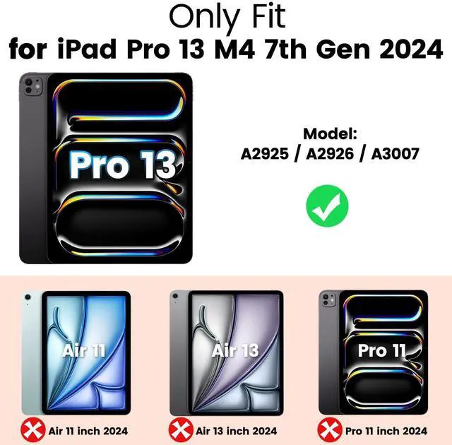 Multi-Function Protective Case for iPad Pro 13 inch 2024 M4 7th generation Case.
