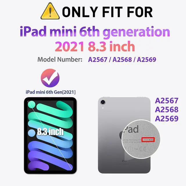Number: A2995, A2996, A2567, A2568, A2569). NOT fits for any other devices. ^^ Full-body Protection with Stand- Multi-layered hard PC back and flexible Silicone bumper provide full protection against drops, bumps, and impacts, also easy to install. Functional Stand with dual stand angles for easily enjoying movies and better working. FREE YOUR HANDS! ^^ Built-in Screen Protector- Prevents for iPad Mini 7th/6th Gen 8.3 inch screen from daily scratches and dusts without compromising sensitivity and provides full protection.