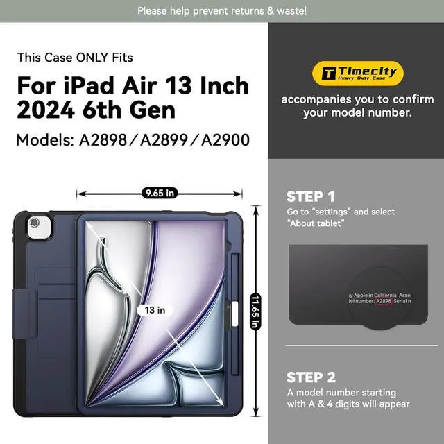 • COMPATIBILITY- Designed for iPad Air 13 Inch M3 2025/ M2 2024, model: A3268, A3269, A3271, A2898, A2899, A2900. NOT compatible with other iPad models. Please confirm your model before purchasing.