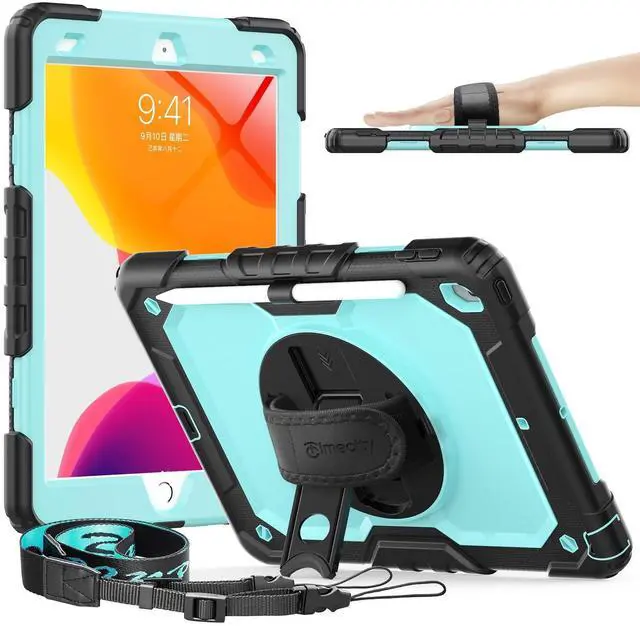 MULTI-ANGLE FUNCTIONALITY: 360 rotating stand with 5 positions for video calls, notes, or viewing; Detachable shoulder strap for commutes; Anti-slip hand strap secures during outdoor work; Dedicated pencil holder for hiking/transport ^^