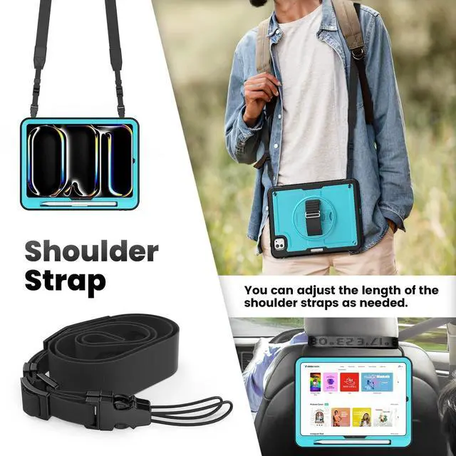 Heavy duty protection: This case for iPad Pro 11 inch is made of PC and TPU, it's built to withstand any impact and keep your device safe and sound. Don't worry about rough handling - this case has got your back! ^^ Adjustable Shoulder Strap and