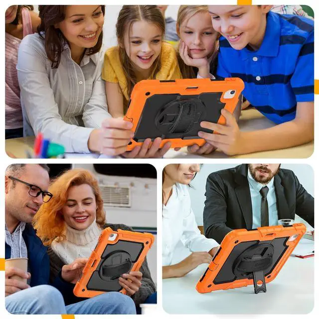 Gen 2018 (Models: A1980/A2013/A1934/A1979). NOT compatible with other tablet models. Please confirm the model before purchase. ^^ [All-Around Protection] 3 layers protection combined with "Front frame with built-in screen protector + hard PC back cover + soft silicone outer shell". This rugged case offers commprehensive protection to your ipad when your ipad is dropped and Scratched. ^^ [360 Degree Swivel Kickstand] The back cover with built-in a 360 degree rotatable turntable, a folding kickstand is hidden inside. When the kickstand is extended, it can be rotated 360 degrees with the turntable to achieve different stand angles. This case comes with pencil holder function. This case supports Pencil 2 wireless charging. ^^ [Anti-Fall Hand /Shoulder Strap] The back turntable built-in a hand strap, when you put your hand into the strap, you can firmly grasp the center of gravity of your tablet. Additional adjustable shoulder strap up to 49 inches, it can be attached to the case for carrying your device. ^^ [Timecity Warranty] All Timecity Cases for iPad Air 5th/4th Generation tablet covers have a 6-month warranty. If you have any questions, please feel free to contact us by email, we will follow up with you within 24 hours.