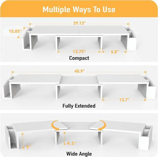 Raises your monitor to a comfortable viewing height. Reduce neck and eye Strain