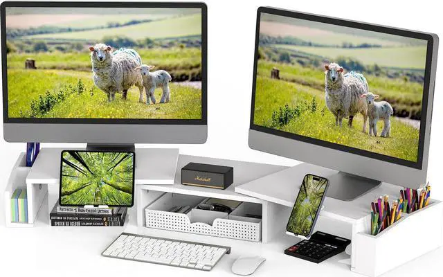 Simple Houseware Desk Dual Monitor Stand Riser with Drawer, White