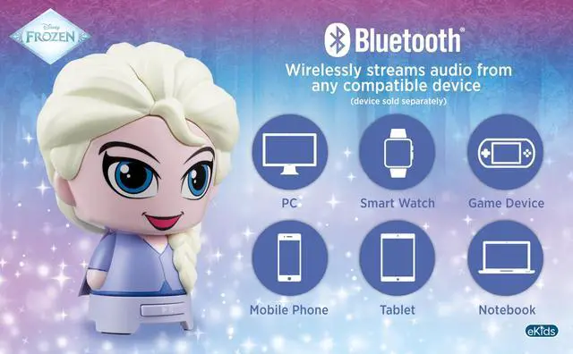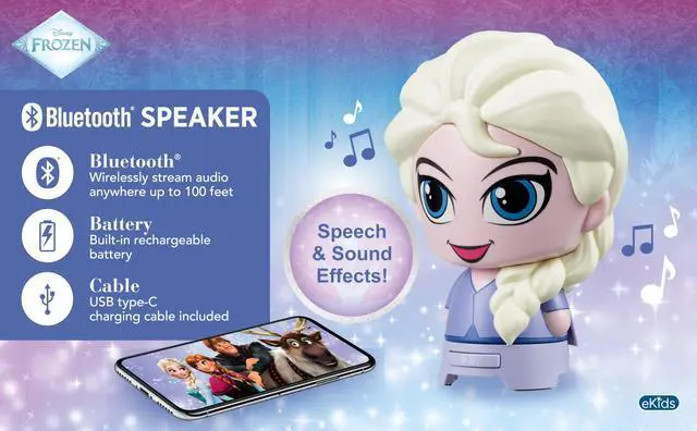^^ Elsa Design: Featuring iconic graphics, this portable speaker makes a great addition to any Disney room decor.