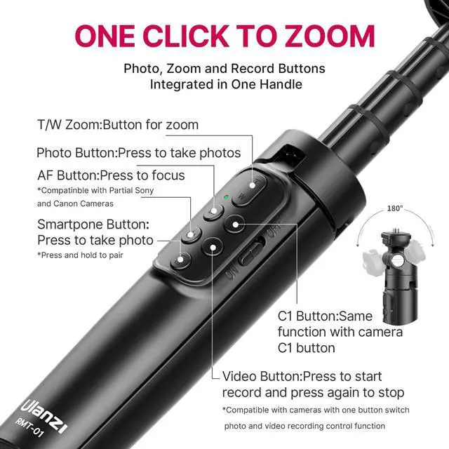 All-in-one control panel - T/W zoom rocker - Photo shutter - Video record/stop (works with cameras that use a single button for stills & video) - AF-ON (supported on selected Sony & Canon bodies) - C1 custom key (mirrors your cameras C1 setting) ^^ Broad camera support