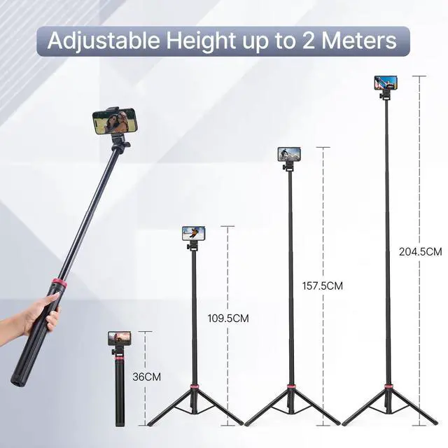 ^^ Sturdy and Reliable: Crafted with a strong aluminum alloy structure and a large area of leg grip, this tripod for cameras/phones offers stability and prevents shaking, giving you peace of mind during use. ^^ Handheld Camera