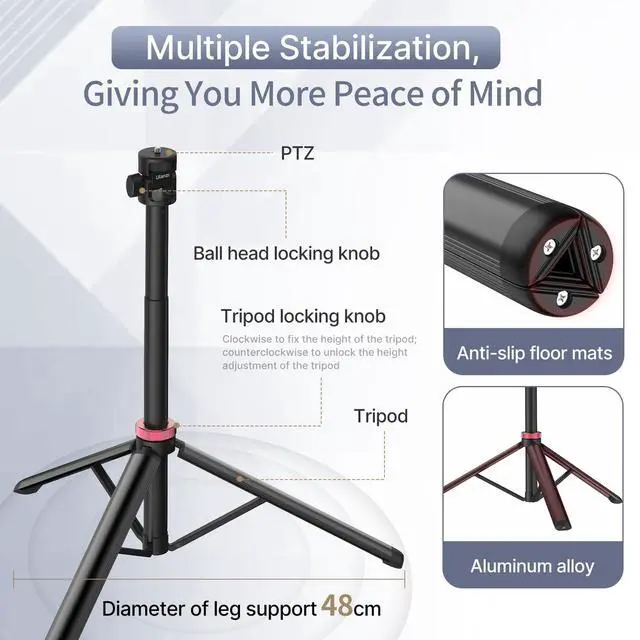 ^^ Adjustable Angle: The camera tripod with ball head can be rotated vertically up to 180, providing you with the flexibility to meet different angle requirements for your lighting needs.