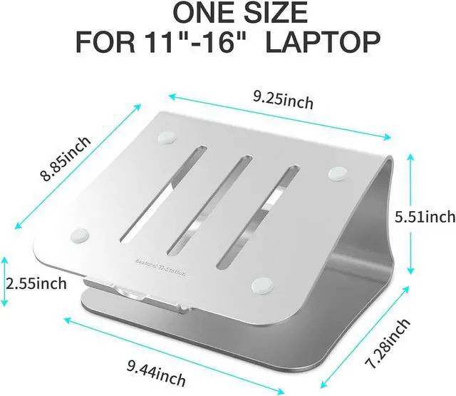 Bestand Laptop Stand, Aluminum Notebook Holder Riser Heat-Vent for MacBook Air/Pro, Dell, HP, Lenovo, Microsoft Surface, Samsung 11-16 inches Notebook (Space Silver)