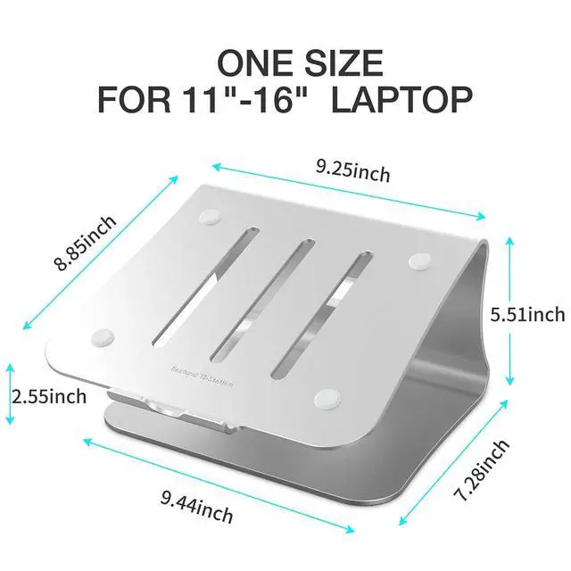 Bestand Laptop Stand, Aluminum Notebook Holder Riser Heat-Vent for MacBook Air/Pro, Dell, HP, Lenovo, Microsoft Surface, Samsung 11-16 inches Notebook (Space Silver)