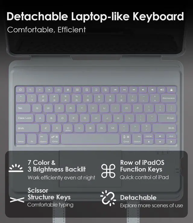 Portable Detachable Keyboard Case with Magic Trackpad, Apple Pencil Holder,, Slide Camera Cover, 7 Backlight Colors