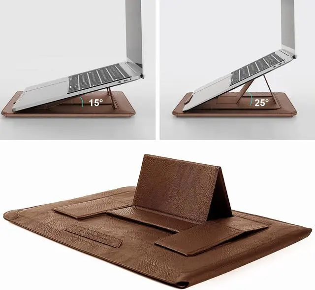 3 in 1 Function - Laptop Stand,Laptop sleeve,mouse pad 3 in 1 function. Packing include:1 Pcs 13-14 inch laptop sleeve case Brown