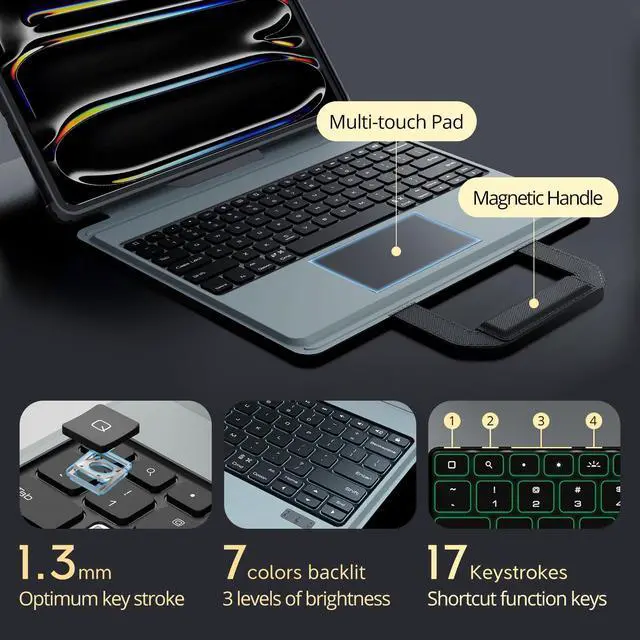 • Detachable iPad Pro Keyboard Case for Efficient Typing: Transform your Apple iPad Pro 13 inch into a full workstation with the detachable iPad Pro 13 inch keyboard. Offering 1.3mm optimum keystroke, backlit keys, and iPadOS shortcut support, this iPad Pro case with keyboard boosts your productivity anywhere.