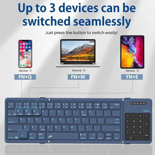 Nillkin Pocket Foldable Wireless Keyboard with Touchpad Number Pad for Travel Trip Meeting for Tablets Fold Phone Laptop PC, Full Size (Small) Magnetic Folding Keyboard (Blue)