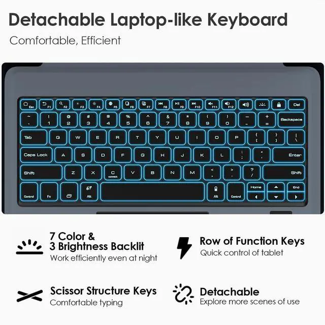 Easy Setup, Carry Go - With Nillkin Carry Go keyboard case, your Galaxy Tab becomes a mobile PC-Like workstation. The unique magnetic carrying handle makes it easy to take your tablet everywhere. Easy to setup and ready to work, close the cover, carry the handle and take your tablet on the road with your productivity and creativity, perfect for business or outdoor use. **Case with keyboard compatible with Samsung Galaxy Tab S10 Plus/S9 Plus, 12.4 -inch. ^^ Detachable Backlit Keyboard - Standard layout with clear keys feedback offers a laptop-like responsive and comfortable typing experience.