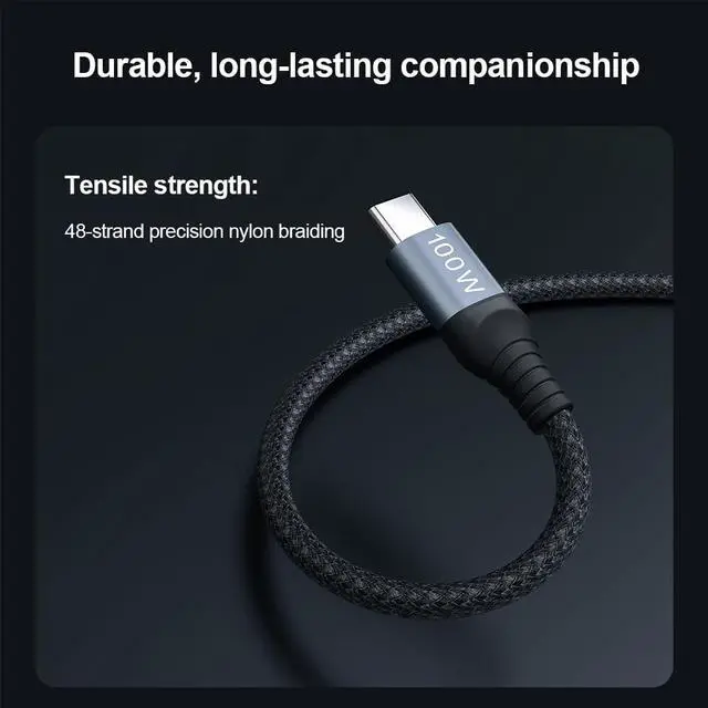 Durable Design: Equipped with E-MARK smart chip, the data cable provides safe and stable protection during charging and data transmission. At the same time, the design of reinforced nylon braided wire body and aviation aluminum metal joints makes the data cable more durable and resistant to wear and tear in daily use