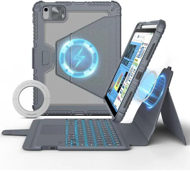 Nillkin for iPad 10th Generation Keyboard Magnetic Kickstand Magic Case with Wall Mount for iPad 11th A16 chip 10.9 inch 10th Detachable Backlit Keyboard,Trackpad (Light Grey)
