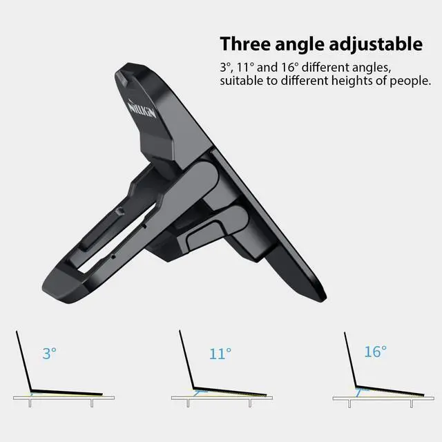 Ergonomic Adjustment: Elevate your laptop with 3 precise angles (3, 11, 16) to reduce neck/shoulder strain and improve typing comfort, perfect for long work or study sessions ^^ Zinc Alloy Durability & Heat Dissipation: Crafted from premium zinc alloy, triangular support, this stand is sturdy yet lightweight. Its open design enhances air circulation, preventing laptop overheating and ensuring smooth performance ^^ Anti Slip Silicone and