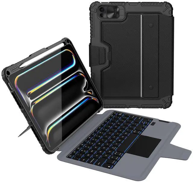 Turn iPad into a Laptop - Nillkin's cover with Keyboard provides RUGGED protection for your iPad, and turns the iPad into a productive laptop. This versatile accessory helps you work efficiently whether traveling, at the office or at home. **Case with keyboard ONLY compatible with iPad Pro 11 inch M5, 2025 (A3357, A3358, A3359), iPad Pro 11 inch M4, 2024 (A2836, A2837, A3006). ^^ Detachable Backlit Keyboard - Clear keys feedback offers a laptop-like responsive and comfortable typing experience. A full row of function keys, support for iPadOS shortcuts for quick editing of documents, programming, photo editing or video editing, maximizing your productivity.