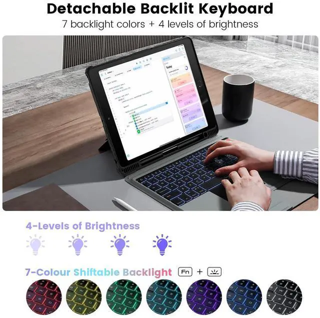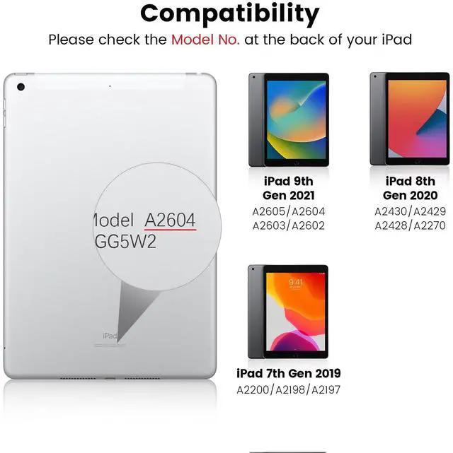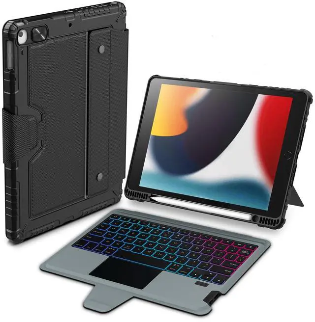 Only: The Tablet Case with Keyboard is ONLY compatible with iPad 9th Generation 2021 (A2602/A2603/A2604/A2605), iPad 8th Generation 2020 (A2270/A2428/A2429/A2430), iPad 7th Generation 2019 (A2197/A2200/A2198) ONLY ^^ Turn Your iPad to LaptopComfortable and Fast Typing. The keys are great to type on. This Nillkin iPad 10.2 inch 9th Generation Keyboard Case will turning your tablet into a mini laptop in a pinch. You can use your iPad for basically everythingWork, Hobbies, Movies, YouTube, etc ^^ 7 Colors Backlit Keyboard7 Colors Backlight Keyboard design is very eyes friendly. Backlit keys and a scissor mechanism deliver quiet, responsive typing. Shortcut keys and the built-in track pad for scrolling, swiping. Type-C port for passthrough charging and front and back protection. ^^ Easy Bluetooth ConnectionConnect to iPad easily. Keyboard and track pad work very well. After 2-3 hours of full charge, the wireless keyboard standby for 90 days. When you close the case or 10 minutes of inactivity, the tablet will auto sleep.
