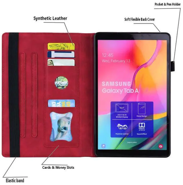 Dteck Folio Case for All-New Fire HD 10 and 10 Plus Tablet (13th/11th Generation, 2023/2021 Release),Premium PU Leather Slim Flip Stand Magnetic Pocket Wallet Cover with Pencil Holder, Red