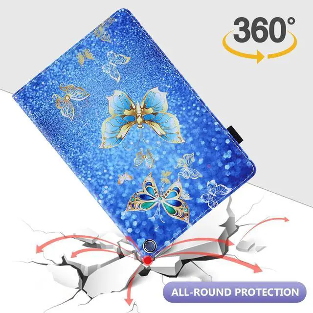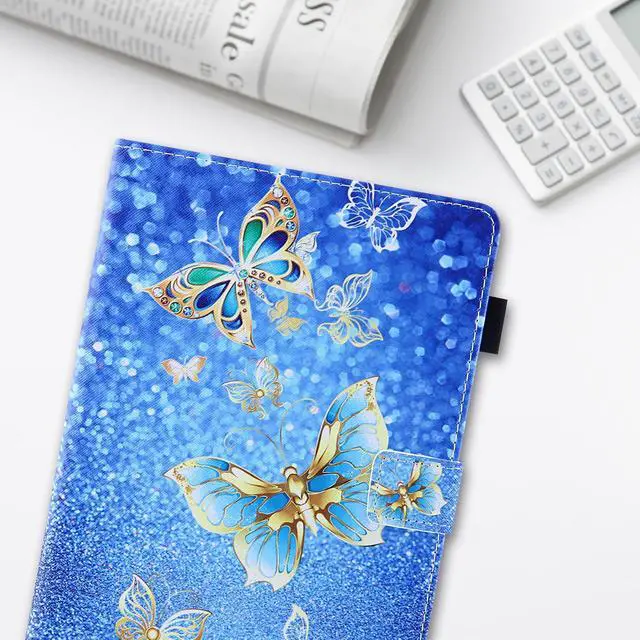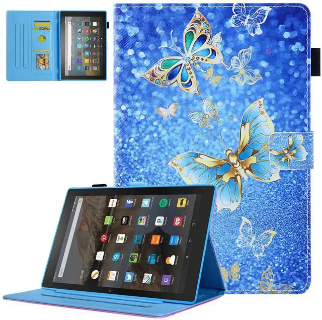 Dteck for Fire Max 11 Tablet PU Leather Protective Folio Fold Stand Case with Auto Sleep Wake, Adjustable Viewing Angles, 4 Card Slots, Slim Cute Case, Blue Butterfly