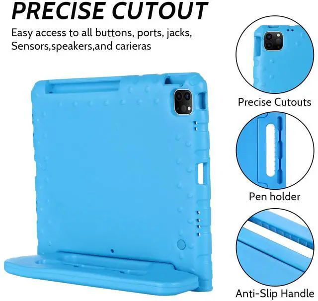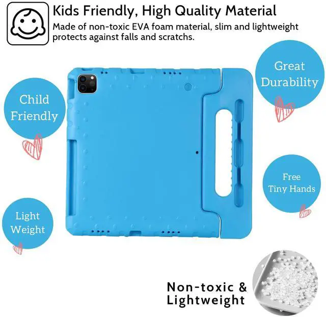 Made from durable, lightweight, kid-safe and shock-resistant eva foam that it fully covers the back, sides and extend the surface of the iPad pro 13 inch 2024 screen, safely protects your ipad pro 13 against bumps and drops.
