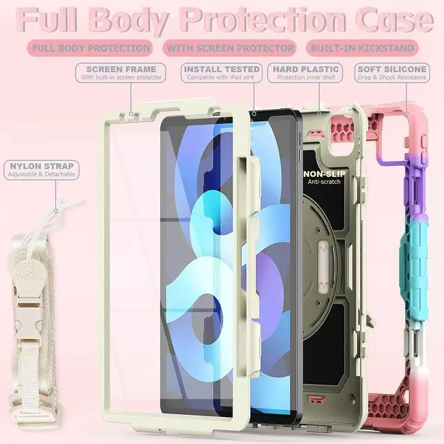 Attach strap to any two holes of iPad Air 4th generation Case 2020, allows you to hang/carry your iPad Air 4th wherever you want.