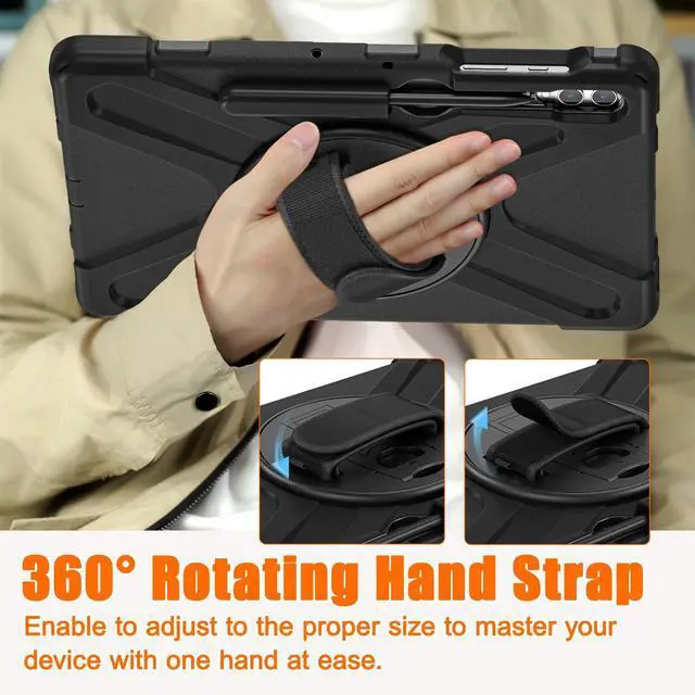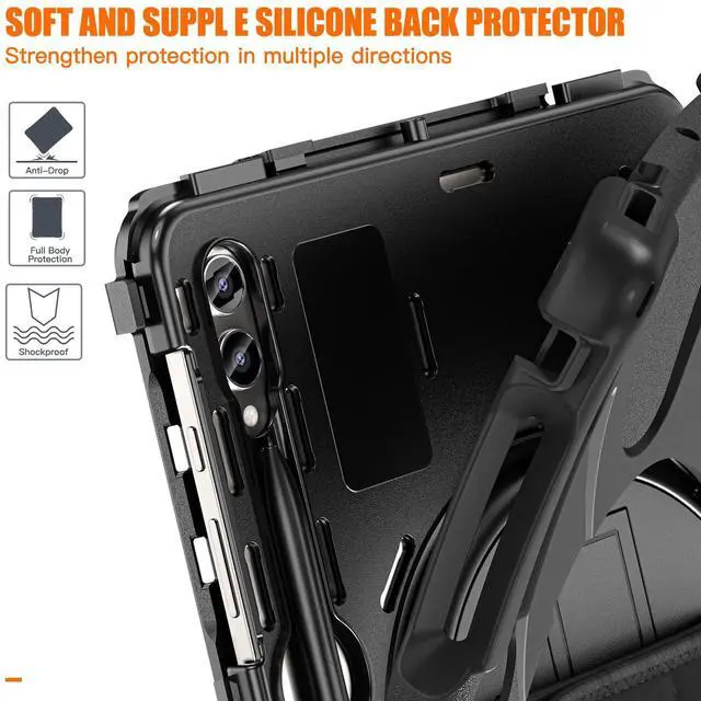 The kickstand can be rotated 360 degrees. Keep your Samsung Galaxy Tab S9 Plus 12.4 standing steady and help free your hands. And provide more flexible and comfortable angles for your viewing or typing, ideal for watching videos, office working and class learning.