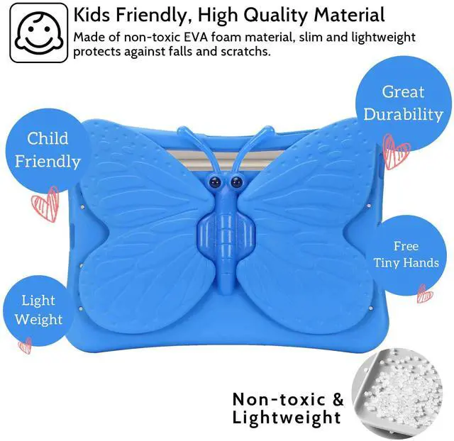 Kids iPad case is made of EVA foam bumper which will cover the screen surface and camera with extra 5mm thickness to prectect them from scratch and impactbr