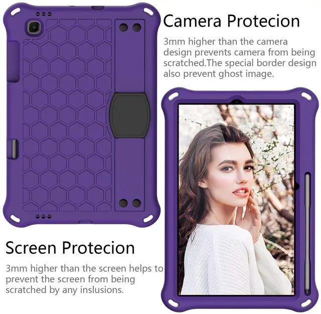 Dteck for Galaxy Tab S6 Lite 10.4" (SM-P610/P613/P620) Tablet Case 2024/2022/2020, with Grip Hand Strap Kickstand, S Pen Holder, Shoulder Strap, Lightweight Protective Shockproof TPU Cover, Purple