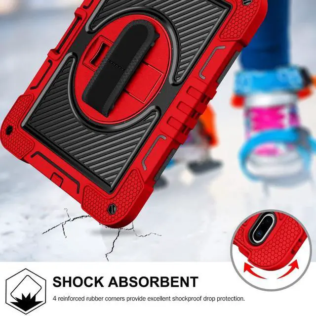 Multi-layer Superior Protection: The rugged heavy duty protective case for tablet is made from premium hard polycarbonate and anti-skidding soft silicone and has passed drop resistance tests, durable and sturdy enough to provide 3-layer total front-and-back protection against drops, shocks and scratches.