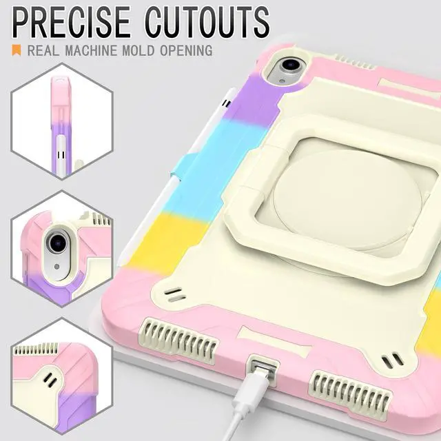 • 360° Rotating Stand: Sturdy 360 degree rotating kickstand provides multi-angle viewing, easier to use your iPad 10th Generation 10.9 inch Tablet while outdoor travelling, working, gaming with kids.