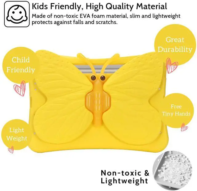 Kids iPad case is made of EVA foam bumper which will cover the screen surface and camera with extra 5mm thickness to prectect them from scratch and impactbr