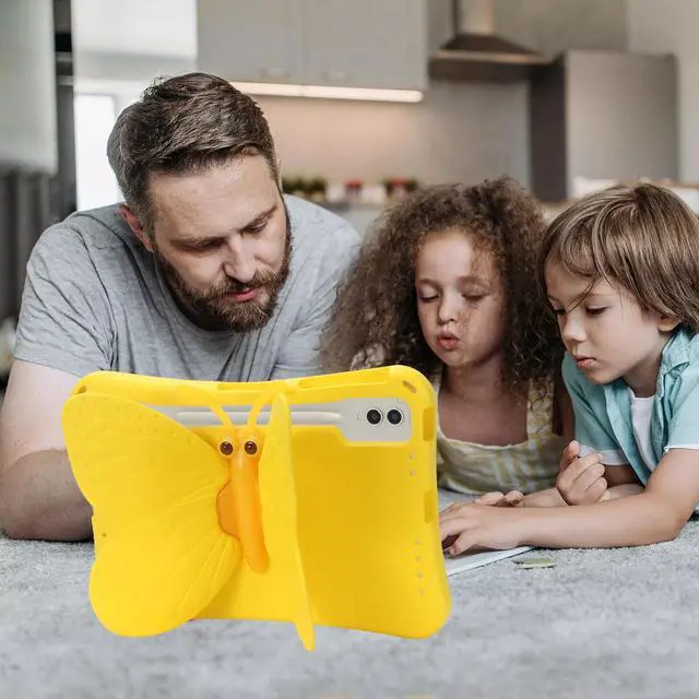 - Butterfly wings double as a tablet stand support for viewing in landscape and vertical format