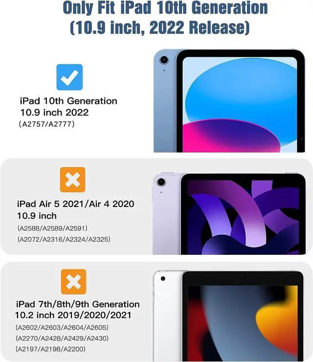 Perfect for gaming, enjoying content, and staying connected when youre on the go and great for men, women, and kids alike. Product Note 1. It DOES NOT contain any built-in or separate screen protector 2. It will ONLY fit the models listed above and will NOT fit any other iPad models Package Contents 1 x Case for iPad 10th Generation 10.9" (Late 2022 Model) 1 x Shoulder Strap