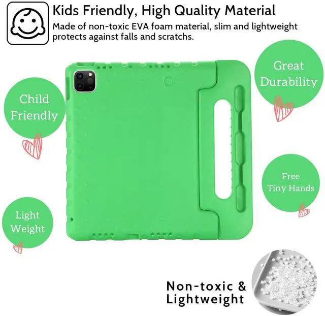 Made from durable, lightweight, kid-safe and shock-resistant eva foam that it fully covers the back, sides and extend the surface of the iPad pro 11 inch 2024 screen, safely protects your ipad pro 5th generation 11" against bumps and drops.