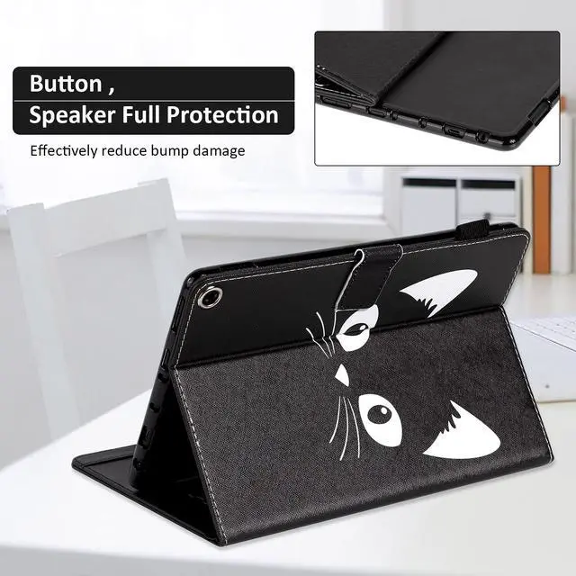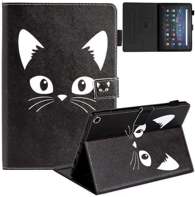 Dteck Case for All-New Fire HD 10 & HD 10 Plus Tablet (2021 Release, 11th Generation) - Slim Multi-Angle Folio Stand Premium PU Leather Protective Smart Cover with Auto Wake Sleep, Black Cat