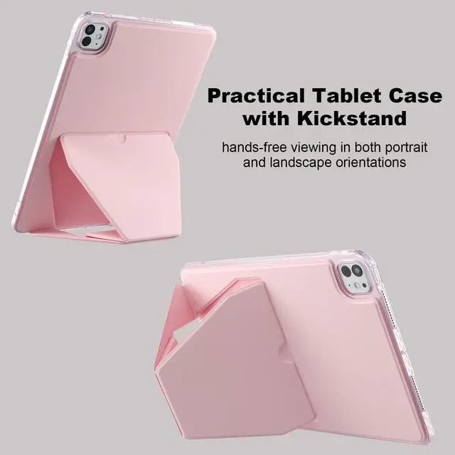 Dteck for iPad Pro 13-inch (M4/M5) 2024/2025 Release Ultra Thin PU Leather Case with Kickstand, Support Pencil Wireless Charging, Slim Lightweight Anti-Scratch Protective Tablet Cover Shell, Pink
