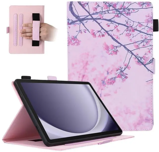 Dteck for Galaxy Tab A9 Plus 11" (SM-X210) Tablet Smart Folio Case with Auto Sleep Wake, Stand, Adjustable Viewing Angles, Pen Loop Holder, Lightweight PU Leather Protective Cute Cover, Pink Blossom