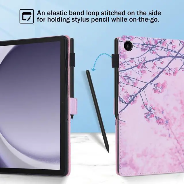 • [Built-in Pen Loop Holder and Hand Strap]: Multifunctional PU leather folio case for Galaxy Tab A9+. The elastic pen loop holder can securely store your S