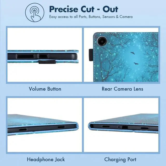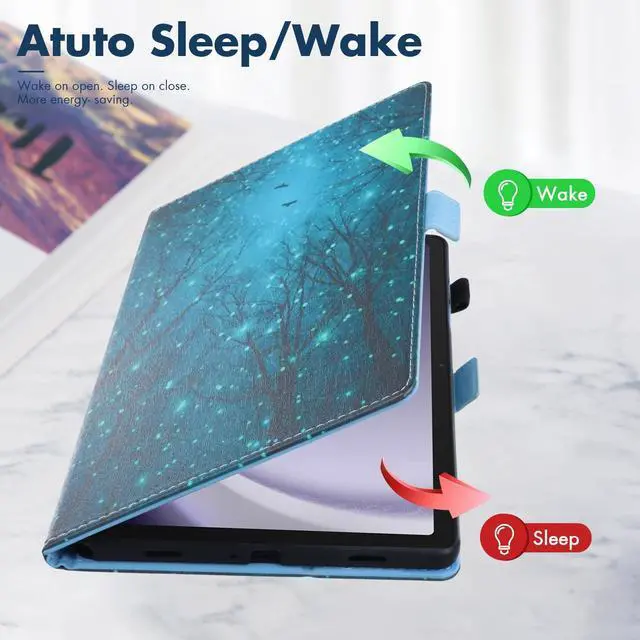 • [Auto Sleep/Wake]: Smart folio case for Galaxy Tab A9+ (11"), automatically wakes up your tablet when you open the cover and puts it to sleep when you close it, conserving battery life and making it easier to quickly access your tablet.