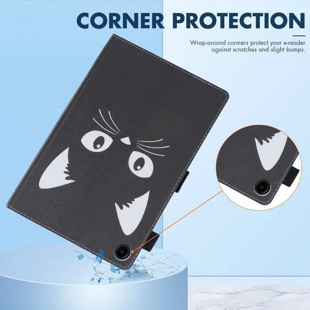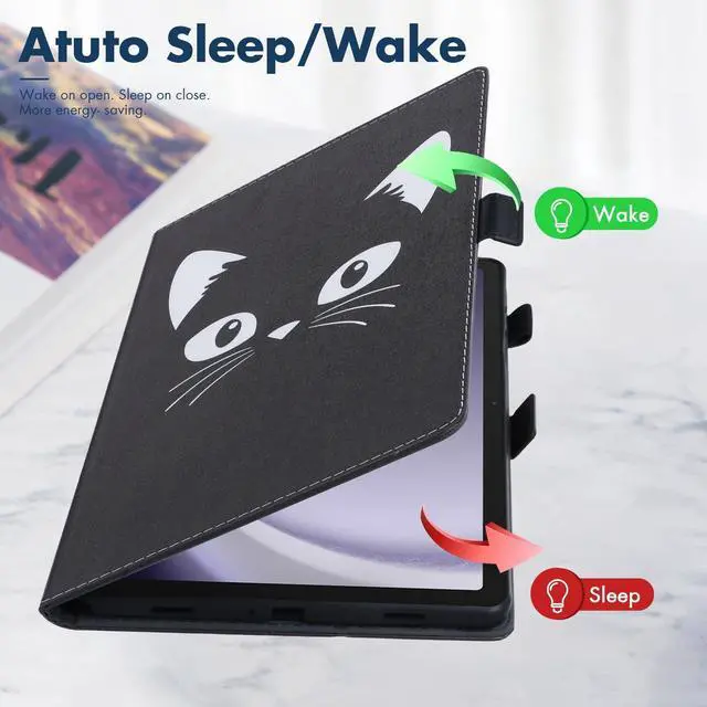 Case Features: protective smart tablet case with auto sleep wake is designed to automatically put your tablet to sleep when you close the case, and wake it up when you open the case. shockproof case is made from premium durable flexible silicone and scratch resistant faux leather material, lightweight and perfect fits, easy to put on and take off. tablet cover has a built-in magnetic strap for safely close your tablet when you do not use it, effectively prevent your expensive tablet from scratches, dust, fingerprints and accidental drops. folio case can be folded to create a stand, adjustable viewing angles, raised lines on left side are as supports for propping tablet up safely, great for user to use his/her tablet in landscape mode. card slots design is convenient to keep some important cards all in one place while on the go. built-in elastic S pen loop for allowing you to easily store and access your S Pen whenever you need it. cute cartoon pattern case, great nice functional tablet case for kids, children, youth, teen, adult, girls, boys, women, men.